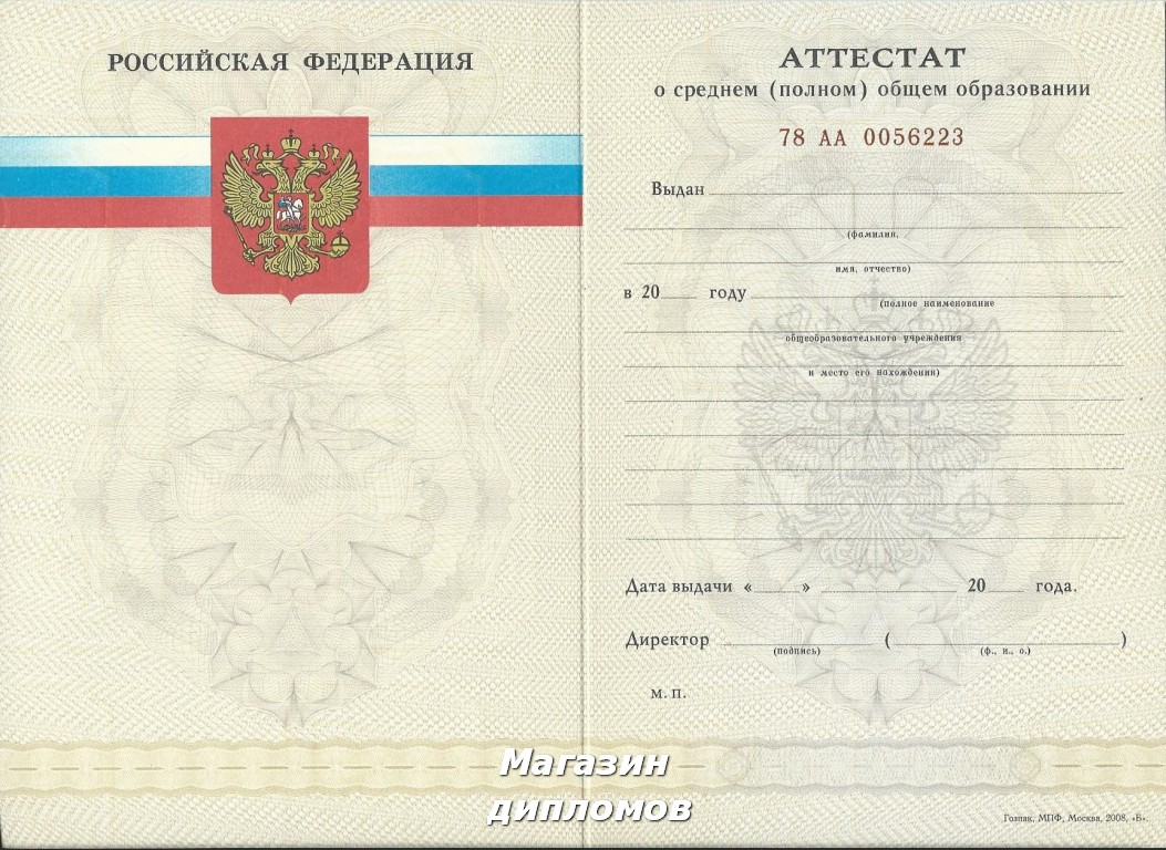 Аттестат Российской Федерации за 11 классов, выдавался с 2014 года